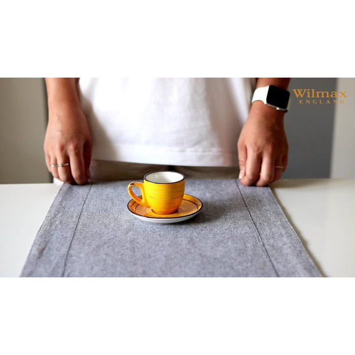 Блюдце диаметром 11 см Spiral от Wilmax, модель WL‑669433/B, дополняет чашку объемом 75 мл, создавая идеальную кофейную пару. Внешняя часть блюдца выполнена из чистого белого фарфора, который добавляет легкость и нейтральность. Внутреннее оформление с помощью цветной глазури подчеркивает глубину оттенков и акцентирует внимание на напитке. Особенный акцент делает желтая глазурь, напоминающая горчицу из французской лавки или яркий цитрус под солнцем. Этот насыщенный, но не кислотный оттенок добавляет аппетитности блюдам еще до первого укуса, и особенно эффектно смотрится в сочетании с простыми закусками.