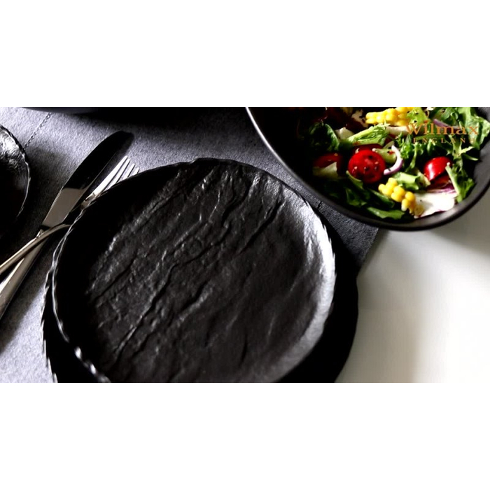 Блюдо круглое может служить как обеденной тарелкой, так и подстановочной, что делает его универсальным элементом вашей сервировки. Оно идеально впишется в интерьер в минималистичном или индустриальном стиле, добавляя выразительный акцент на вашем столе. Фактура серии SlateStone от Wilmax делает подачу блюд по-настоящему эффектной. Блюдо прекрасно комбинируется с коллекцией Graphics и универсальным белым фарфором.