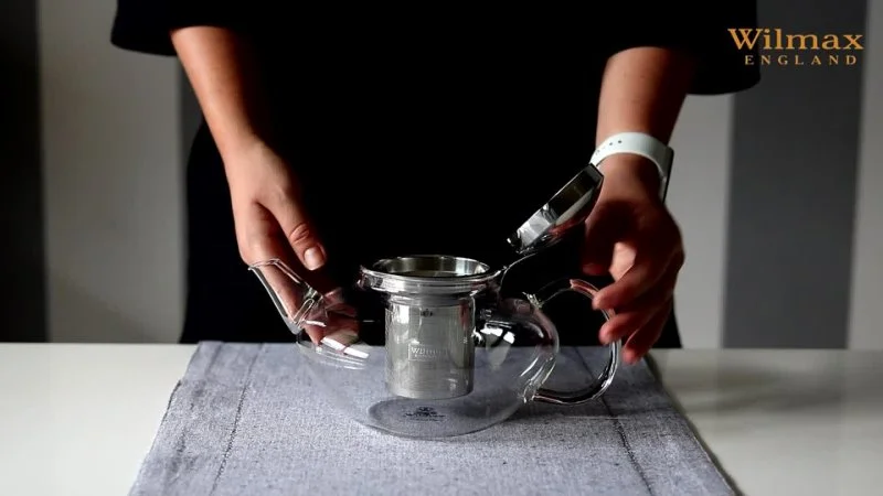 Особенностью этого чайника является съемный фильтр из нержавеющей стали 18/10, который дарит удобство использования. Фильтр оснащен оригинальной откидной крышкой, которая позволяет легко открывать и закрывать чайник, удерживая его одной рукой. Благодаря надежному соединению крышки с фильтром, вы можете быть уверены, что крышка останется на месте при наливании чая, не допуская проливания.
