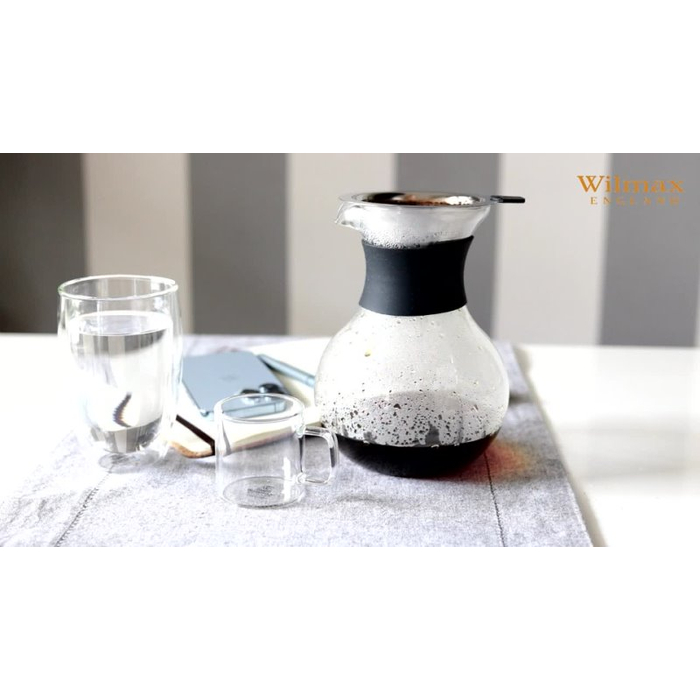 Декантер кофейный 950 мл WL-888854/A от бренда Wilmax — это идеальное сочетание функциональности и стиля. Корпус декантера выполнен из высококачественного боросиликатного стекла, что обеспечивает устойчивость к температурным перепадам. Материал известен своей исключительной прозрачностью, что позволяет наблюдать за процессом приготовления кофе.