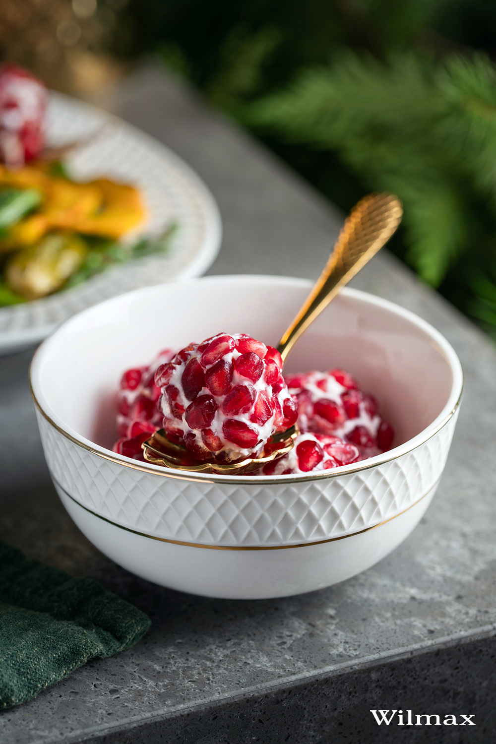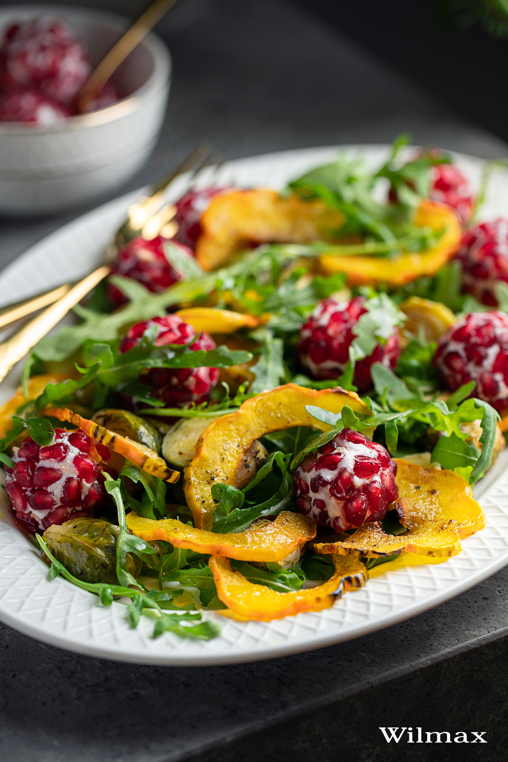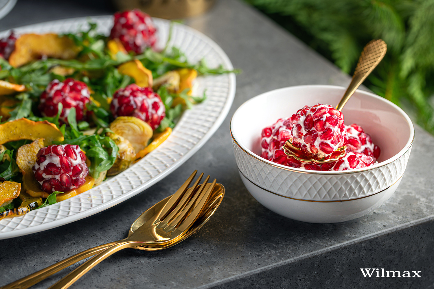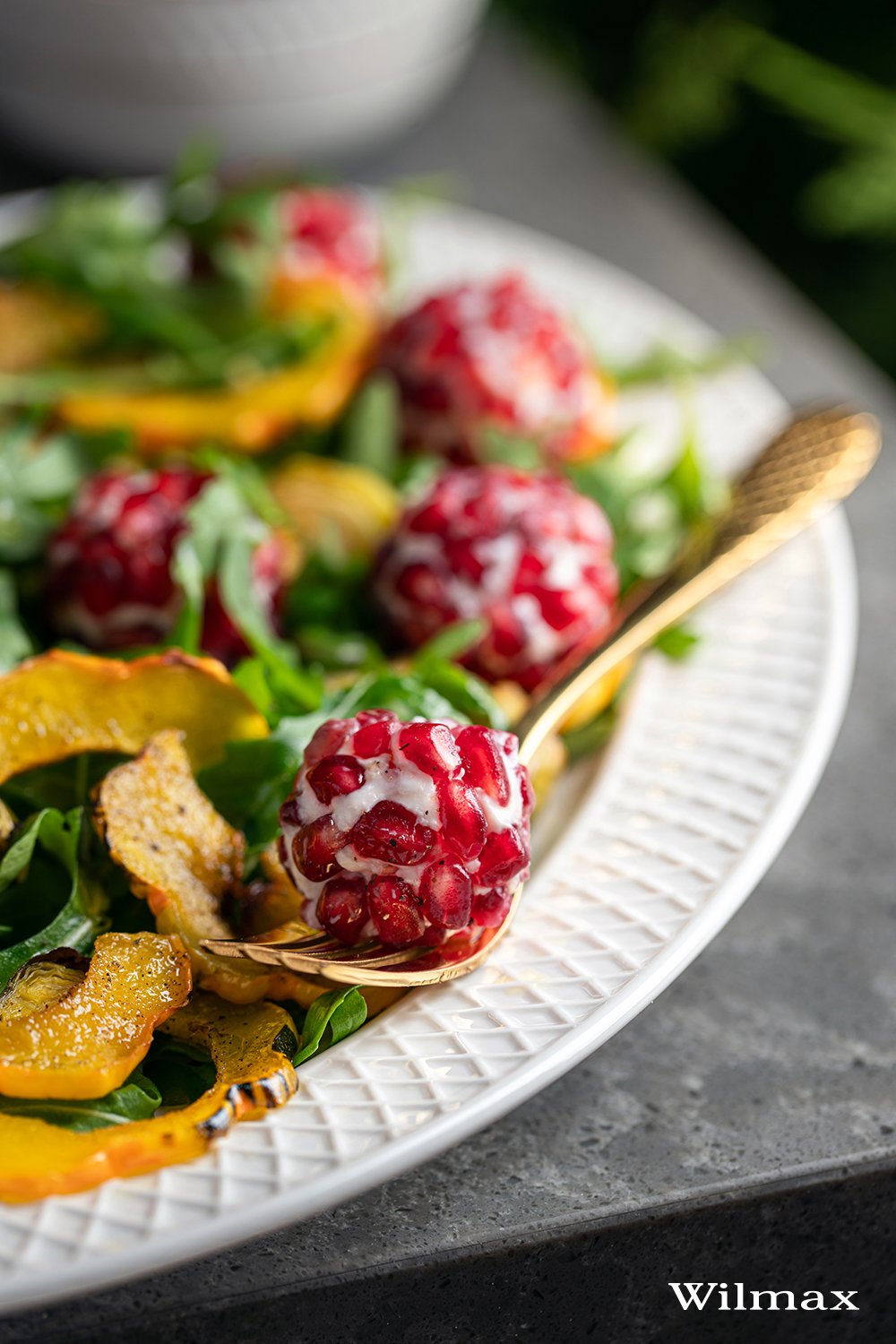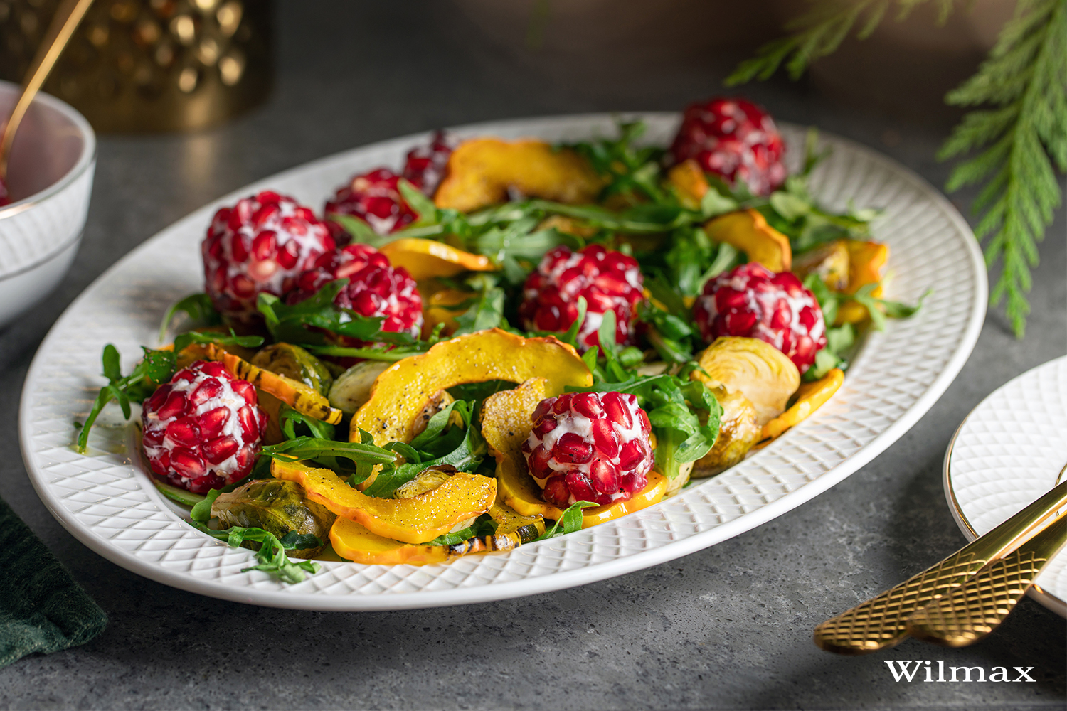 Праздничный салат из мягкого шевра с зернами граната