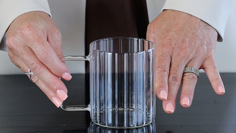 Особенностью данной кружки является её полосатая текстура, которая придаёт ей современный и элегантный вид. Прозрачность термостекла позволяет наслаждаться цветом напитка, создавая эффект лёгкости и воздушности. Благодаря эргономичной форме и удобной ручке, кружка комфортно лежит в руке.