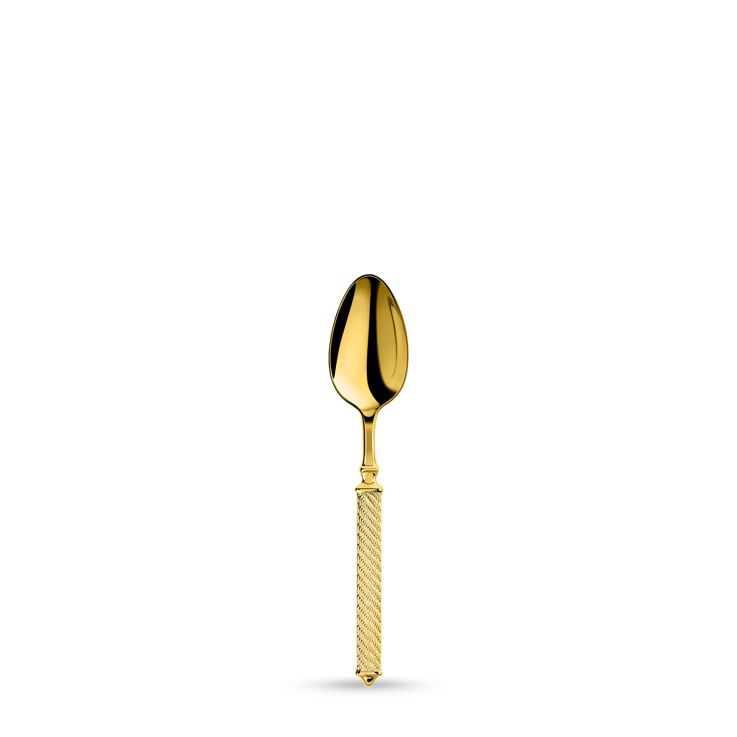 Ложка обладает приятной тяжестью и толщиной, обеспечивая комфортное использование. Она изготовлена из высококачественной нержавеющей стали 18/10 и выполнена с зеркальной полировкой, что придает ей особый блеск. Коллекция представлена в двух цветах: серебряном и золотом. Эти оттенки добавляют прибору стиль и утонченность.