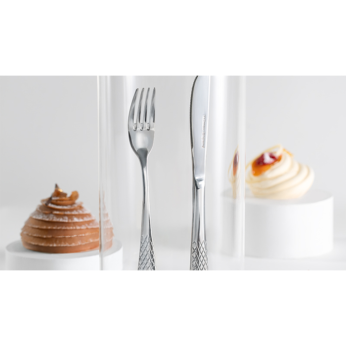 Особое внимание привлекает износостойкое покрытие, выполненное с использованием современного метода вакуумного напыления. Это покрытие не только придает изделиям стильный вид, но и позволяет им выдерживать мытье в посудомоечной машине, сохраняя при этом свою презентабельность. Особенно если воздержаться от длительного замачивания в процессе мытья. Вилки украшены интересным ромбовидным рисунком на ручке, что добавляет им особого шарма и изысканности.