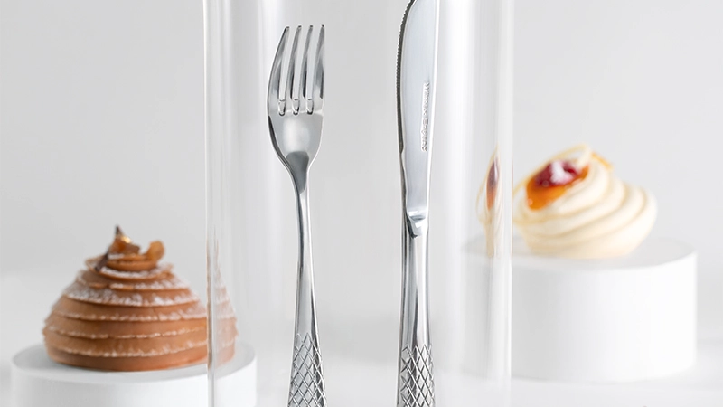 Особое внимание заслуживает износостойкое покрытие, выполненное современным методом вакуумного напыления. Это позволяет вилкам сохранять свою презентабельность даже при интенсивном использовании и мытье в посудомоечной машине. Особенно если воздержаться от длительного замачивания в процессе мытья. Коллекция отличается интересным ромбовидным рисунком на ручке каждого изделия, что придает им особую элегантность и стиль.
