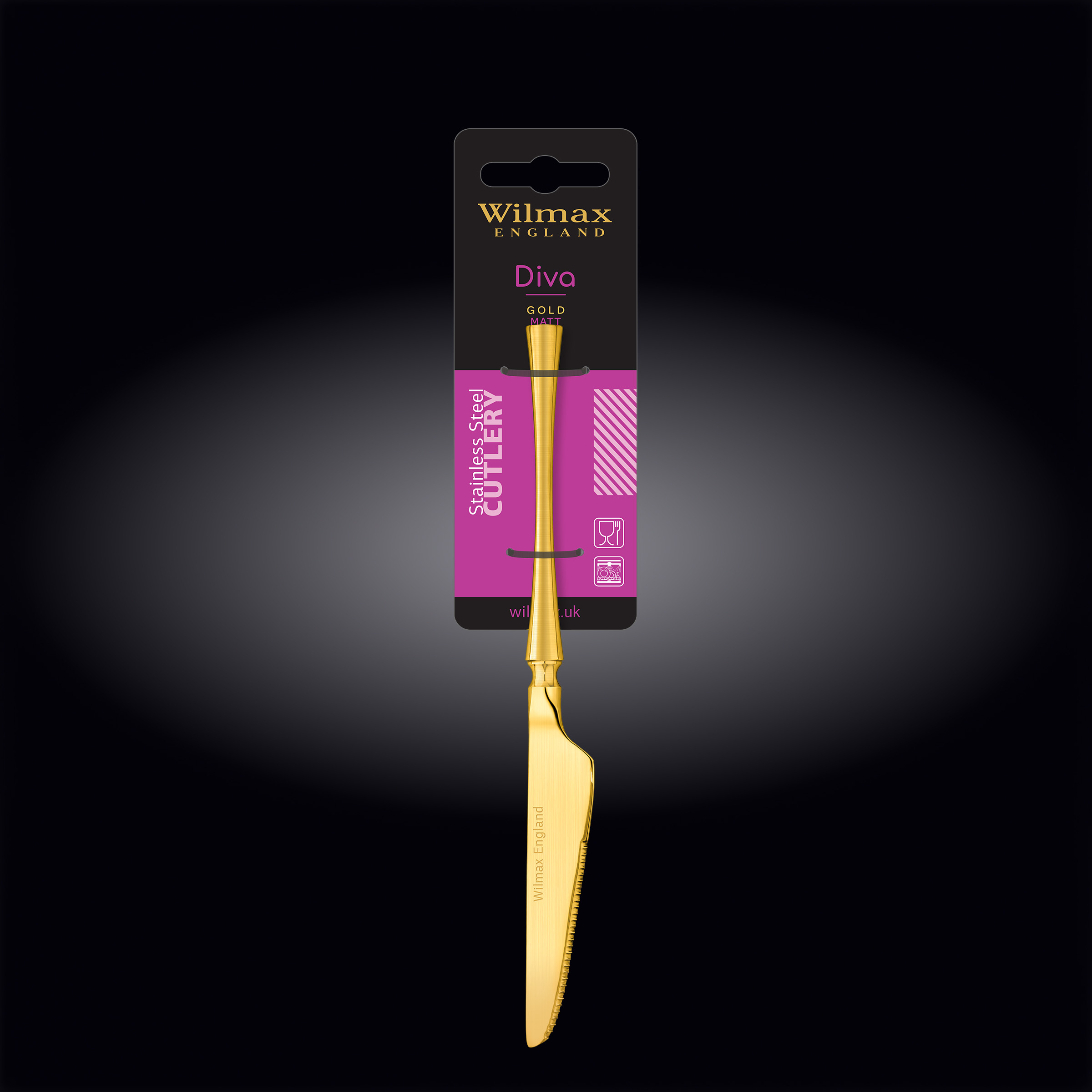 Нож для стейка 22,5 см на блистере WL-999.503.505/1B из коллекции Diva от бренда WILMAX — оснащенный длинным лезвием с острыми зубчиками, позволяет осуществлять нарезку мяса, обеспечивая сохранность сочности стейка. Вдохновленный винтажным шармом, этот нож станет незаменимым дополнением к вашему столовому набору. Изделие доступно в четырех расцветках: классическом стальном, бронзовом, золотом и черном цветах, что позволяет подобрать лучшее решение для любого интерьера и стиля сервировки.