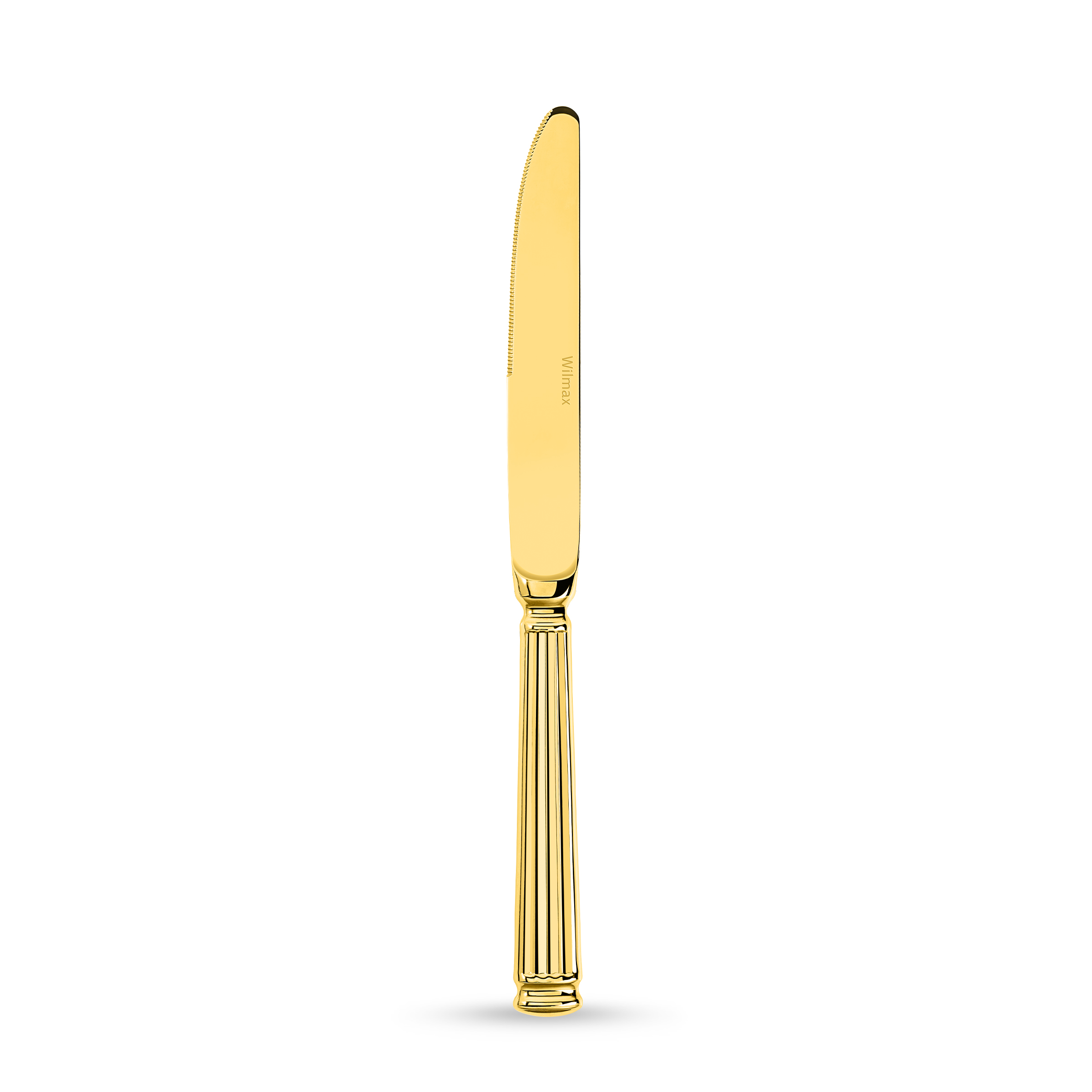 Нож столовый 24 см WL‑999883001/1B на блистере из новой коллекции Triumph от WILMAX – это не просто столовый прибор, а воплощение элегантности и практичности. Каждый элемент этой линейки разработан с учетом лаконичной геометрии, символизируя победу и достижение. Дизайн ножа гармонично сочетается с античными мотивами и создаёт ассоциации с Триумфальной колонной. Столовые ножи доступны в серебряном и золотом цвете.