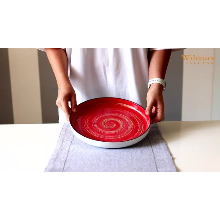 Тарелка 28 см из Spiral от Wilmax – это гастрономическая тарелка с плоским широким дном и вертикальными бортиками, которая станет акцентным предметом современной сервировки. Она стоит на компактной цилиндрической основе, чуть уже основного диаметра, создавая эффект легкого возвышения над поверхностью стола. Визуально тарелка-пьедестал, где еда подается как экспонат: бортики здесь не функциональны, а декоративны, задают архитектурный ритм и делают подачу более скульптурной.