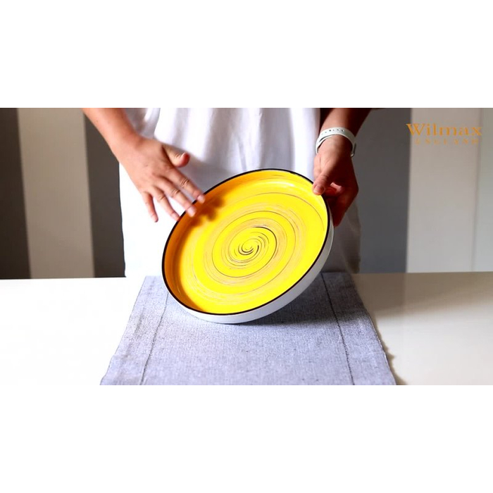 Каждое изделие коллекции завершается четким коричневым рантом, добавляющим акцент и завершенность дизайну. Одним из ярких представителей коллекции Spiral от Wilmax является гастрономическая тарелка диаметром 28 см, модель WL‑669420/A. Она отличается плоским широким дном и вертикальными бортиками, что делает ее идеальным элементом для современной сервировки. Тарелка стоит на компактной цилиндрической основе, создавая эффект легкого возвышения и превращая подачу блюда в настоящее искусство.
