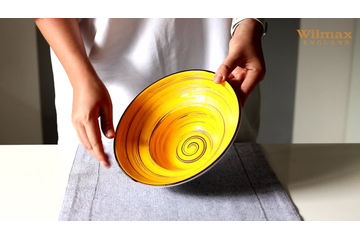 Погрузитесь в атмосферу современного стиля с коллекцией Spiral от Wilmax. Коллекция выделяется выразительным контрастом белоснежного фарфора снаружи и глубокой, насыщенной глазури внутри. Оттенок глазури варьируется от нежных переливов до плотных цветовых всплесков. Главная особенность коллекции — спираль, которая начинается в центре предмета и плавно раскрывается наружу до самого ранта. Коричневая спираль с «живыми» проблесками и переходами интенсивности добавляет каждому изделию уникальности и никогда не повторяется полностью.
