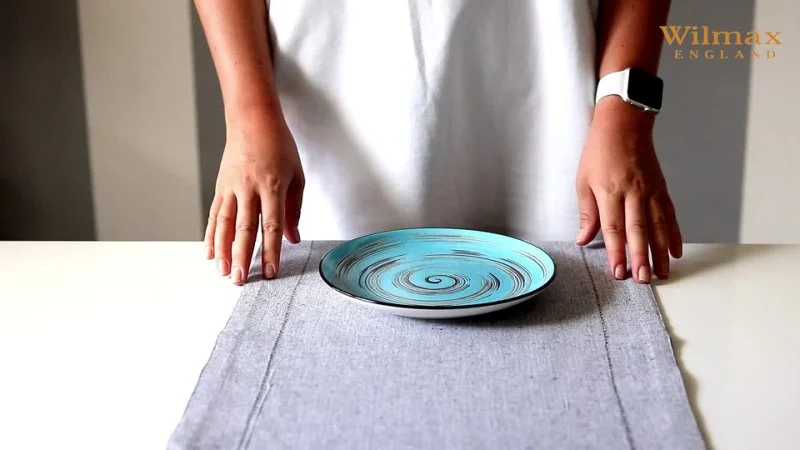 Одной из главных особенностей тарелки является контраст между белоснежным фарфором снаружи и насыщенной глазурью внутри. Глазурь раскрывается по-разному, от нежных переливов до плотных всплесков цвета, добавляя изделию глубину и характер. Но особое внимание привлекает спираль, начинающаяся в центре тарелки и раскрывающаяся к краям. Спираль с «живыми» проблесками и разнообразием интенсивности делает каждую тарелку уникальной.