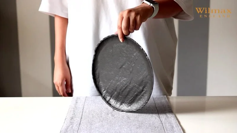 Серия SlateStone — это уникальное сочетание природной силы и современного дизайна. Текстура, имитирующая природный камень, придает изделию выразительность и брутальный характер. Детали, такие как аккуратно обработанные края, подчеркивают природную эстетику и создают впечатление ручной работы. Это делает тарелку идеальной для использования в минималистичных или индустриальных интерьерах, где акцент на натуральных материалах играет ключевую роль.